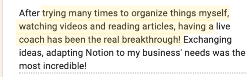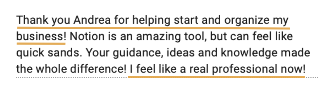 I highly recommend working with Andrea as your guide into Notion, you will not regret it!”