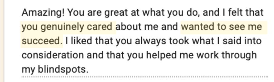 “I wanted to make real changes for so long but I didn’t know where to start and how to set things in motion. She has helped me move from a vicious cycle of feeling stuck to gaining clarity and actually moving forward.