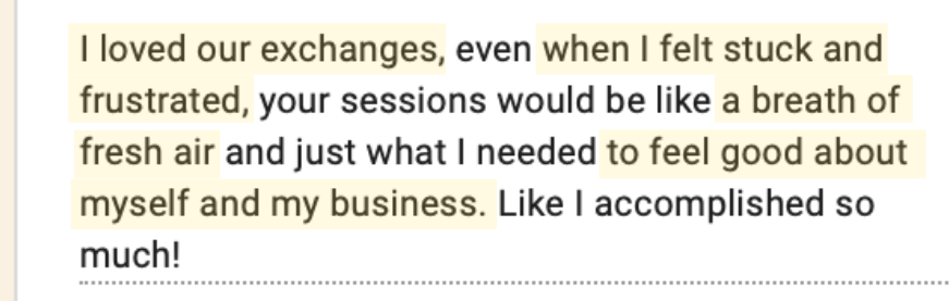 Lindsay had a thriving business but was personally at a breaking point. She was fully booked with 1:1 clients (and a long waitlist), which left her little time for herself and for learning. Within just 4 sessions she: